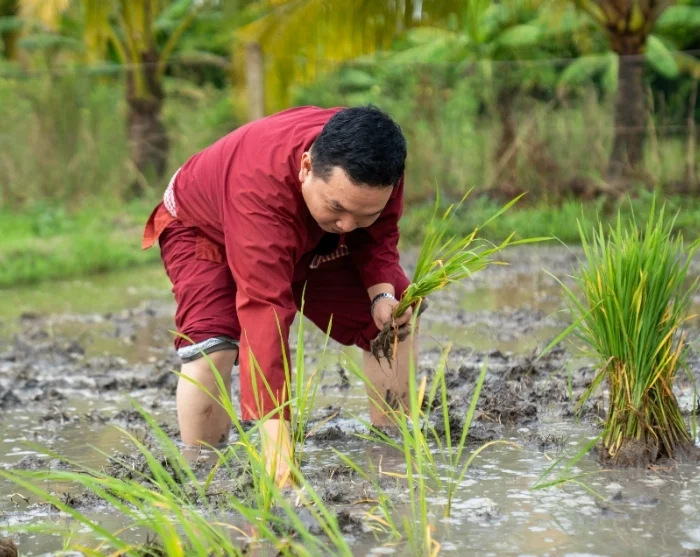 Your tour then takes you to our social sustainability project in Vinh Long, established by our local partner. Here, a peaceful walk through the village awaits, with your guide offering insights into the project as you go. You’ll also have the opportunity to experience traditional rural life firsthand. Together with local farmers, you’ll get involved in rice cultivation – either planting young seedlings or helping with the harvest, depending on the season. This hands-on and enlightening activity provides a unique glimpse into daily life in rural Vietnam and the dedication that drives sustainable farming. By taking part in this tour, you’ll also be supporting families in Vinh Long, as a percentage of the tour price goes directly towards the project, which you can learn more about here.