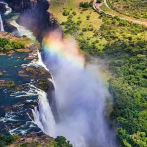 Victoria Falls is one of the largest waterfalls in the world and is located on the border of Zambia and Zimbabwe.